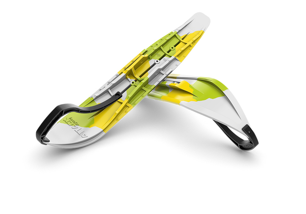 The Attack ski features molded grippers on the braces and side of the ski to help you safely stand on your snow covered skis when trying to get your sled dug out or flipped over.
