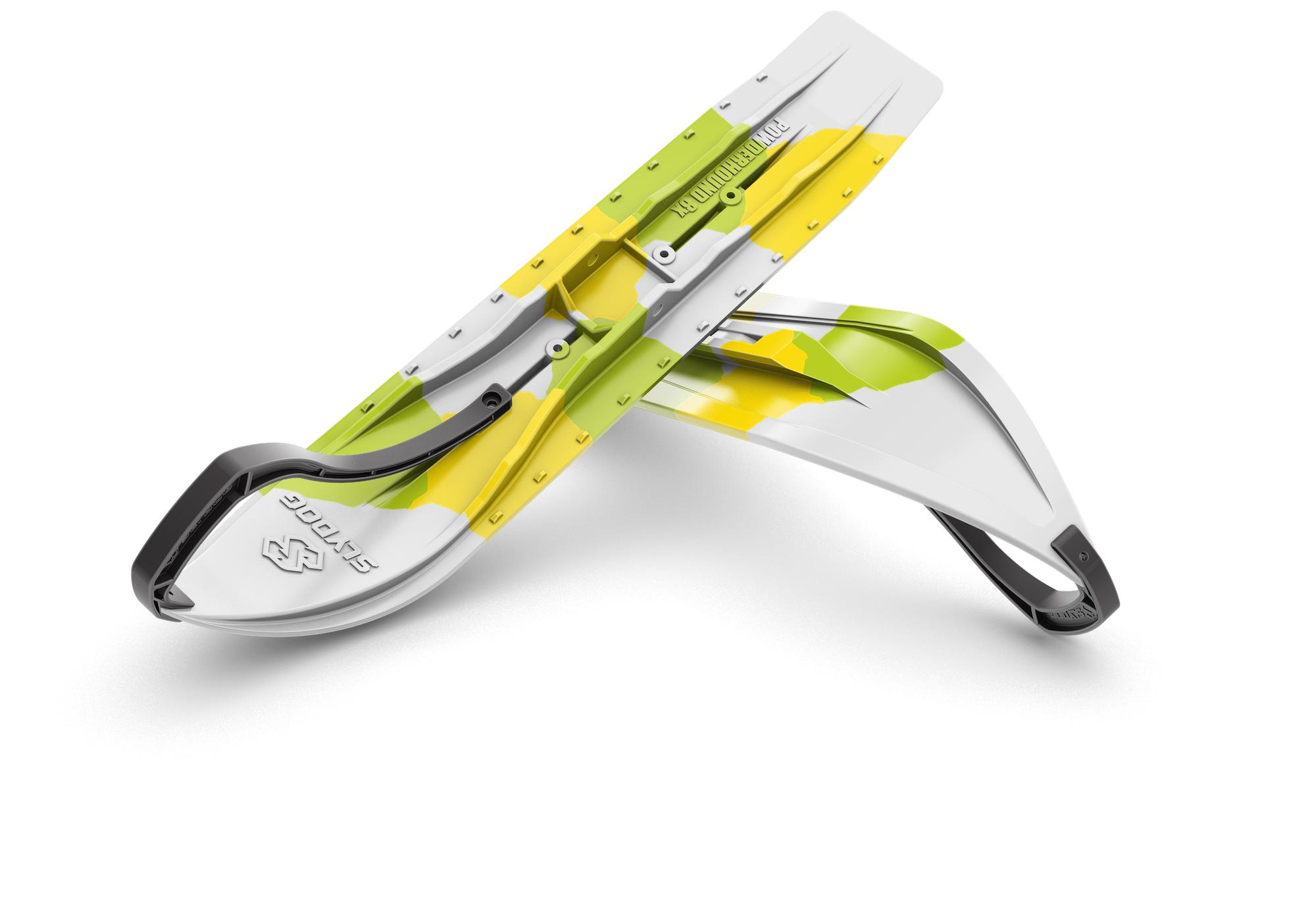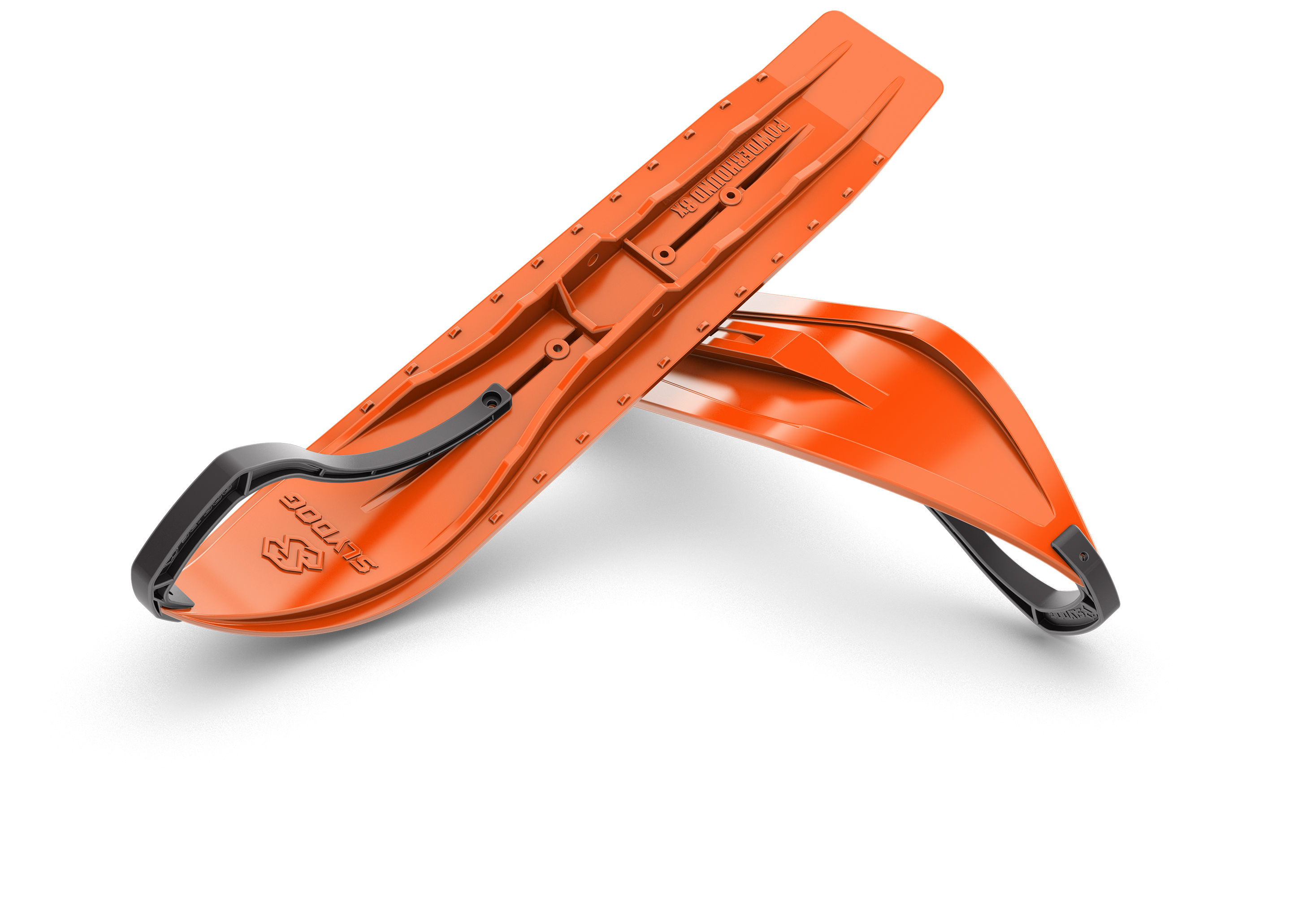 The Powder Hound 8X ski features molded grippers on the braces and side of the ski to help you safely stand on your snow covered skis when trying to get your sled dug out or flipped over.